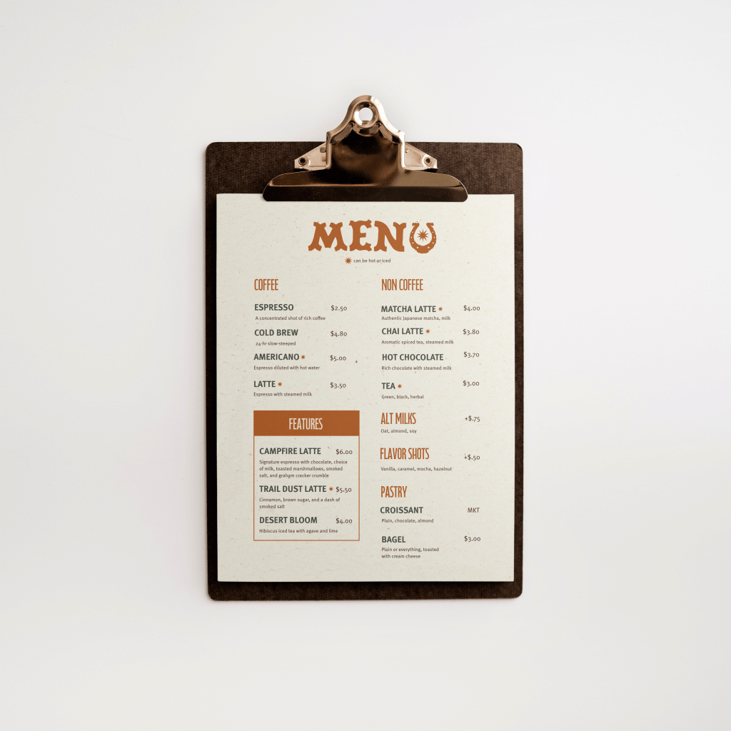 The result is a rugged yet refined brand system that captures these values through warm, earthy tones, vintage-inspired typography, and subtle textural details. The primary logo evokes movement and heritage, while the supporting visuals lend themselves to a range of applications from enamel mugs, coffee bags, menus, and beyond.